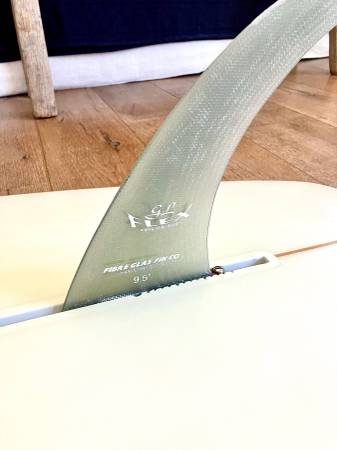This thing absolutely flies down the line. 9.5” fiber glass fin co flex fin included.