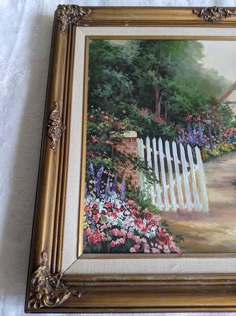 The painting is an "ENHANCED GICLE'E" of a Tudor style country cottage.