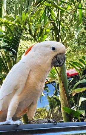 Hello Craigslist, I have a beautiful female Moluccan Cockatoo for sale, she is 5 years old, healthy and very friendly. She likes to dance and hop around. Would like for her to go to a home where she will be seeing people because with my work schedule lately it's kind a tough to spend time with her now sadly. If you are interested let me know. I can do $5K. Thanks.