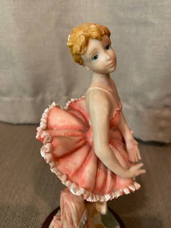 Vintage Art Sculptures, Collector's Edition 1995 Ballerina De Elina. Alabastro European Style. In good condition. Nice pink color dress! Hand crafted! Cash only
