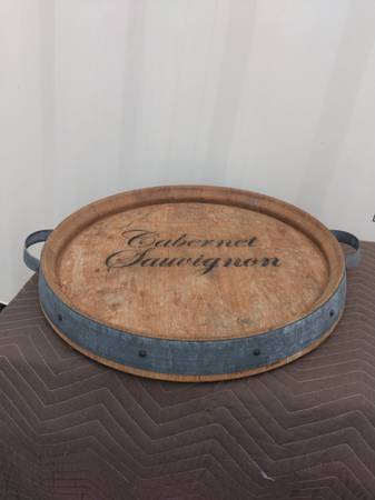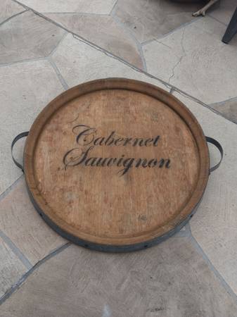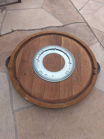The Cabernet Sauvignon Reclaimed Wine Barrel Top Lazy Susan Turntable with Metal Band is a stylish and unique addition to any home bar or kitchen. Made with a round wood grain pattern and a brown color, this 23" diameter lazy Susan features a metal band for stability.