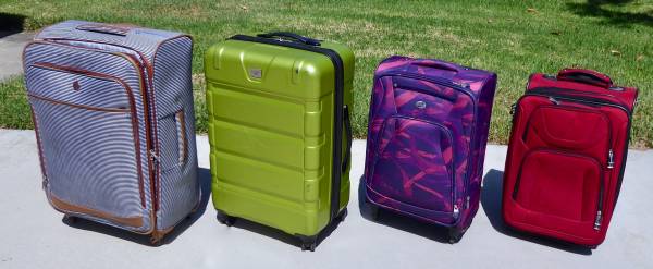 4 suitcases: 2 checked, 2 carry-on. Choose any or all, $20 each. Cash only.