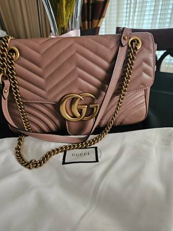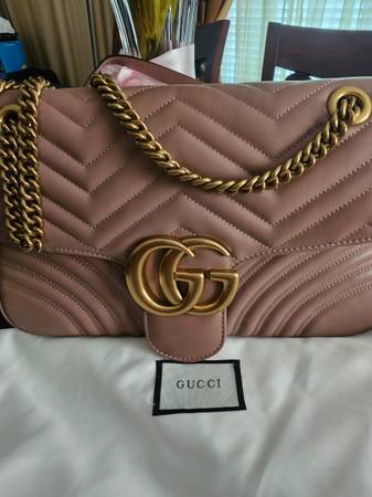 Large Dusty Pink Gold Chain Leather Gucci Bag! Comes with dust cover only! 100% authentic Gucci Bag. This bag is rarely used and is in excellent condition! Cash offer only and Firm with the price....