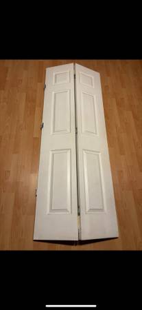 Used 30 in. x 80 in. 3-Lite Panel Solid Core MDF White Finished Composite Closet Bi-fold Door with Hardwares