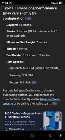 Used in excellent working condition The Magnum Press MCB4B is a 4-ton, high-speed, bench model C-frame hydraulic press. It is designed for production applications and is a robust machine suitable...