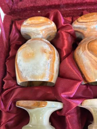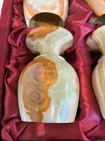 Each cup is one-of-a-kind due to the unique stone veins and color patterns.