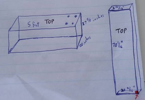 Dimensions of the main unit are 5 feet x 27 5/8 inches x 20 inches. The added part to make it an L desk dimensions are 70 1/16 inches x 20 2/16 inches x 2 10/16 inches.