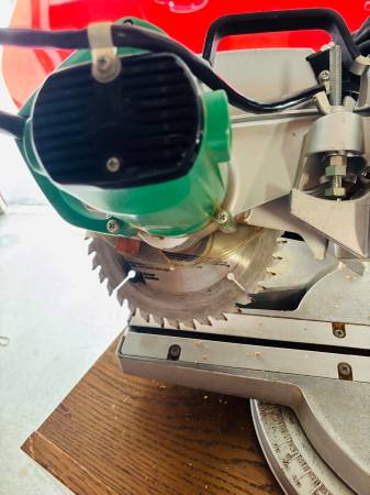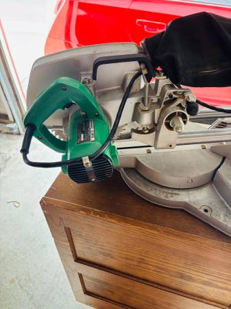 The Hitachi C8FB2 8 1/2" Sliding Compound Miter Saw is a high-quality power tool designed for cutting wood with precision. Made in Japan, this rare miter saw from the reputable brand Hitachi features a corded electric power source and a cutting depth of 2 1/2 inches. With a 45° cutting angle and an 8 1/2-inch blade diameter, this miter saw is ideal for a wide range of woodworking projects. The set includes blades and features a 6-foot cable length, making it a reliable and efficient tool for any workshop.