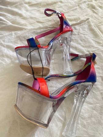 See pics of Sexy Multi Colored Platform Shoes SZ LG 8. Asking $75.00 cash or donate to a small nonprofit of our choice. Pick up in Westminster 92683 area.