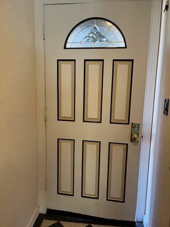 Very classy front doors. Real wood and painted both sides. These doors are solid wood not plastic or plywood. The top glass is beveled and gives off a super nice reflective look when light or sun...