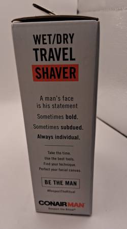 Conair Man Model# SHV22R. Twin foil blades, washable, shave wet or dry. Cordless, Takes 2 AAA Batteries. Brand new.