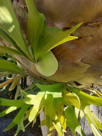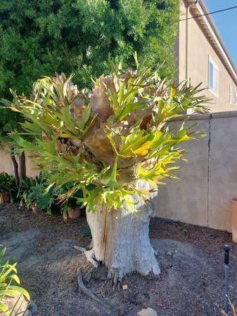 HUUUUGGE!!! AT LEAST 5' across. Text me if you are interested. Pickup only. The fern is on an old, tall Sycamore stump. There is access through the side of the house.