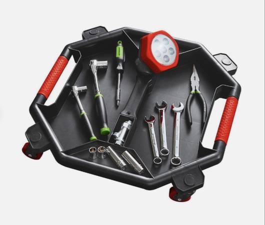 RECEIVED AS GIFT AND NEVER USED Use this versatile tool creeper when you are working on wheels, suspension, and exhaust systems. * 30 pound capacity * Five compartments to organize tools and parts *...