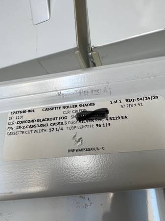 Blackout roller shade bought five years ago $500 will sell for 60 cordless works great fits a window 571/2 inches wide or smaller and up to 44 inches tall. Concord fabric blackout fog color by...