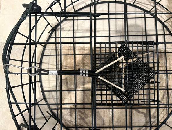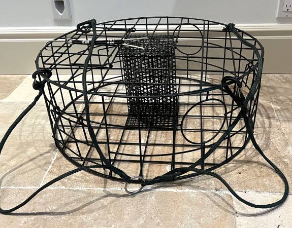 I also have a SMI Beau Mac crab trap made of coated metal and featuring 3 one way gates, a top opening hatch with bait cage, and a 4 arm harness with heavy duty clips. It measures 24" wide x 24" deep x 9" tall. It was used during a one week vacation in Seattle one week and is in like new condition. It is $100.