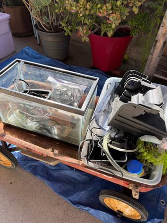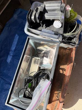 10 gallon fish tank with 2 pumps, filters, light and decorations.. $45. Cash only