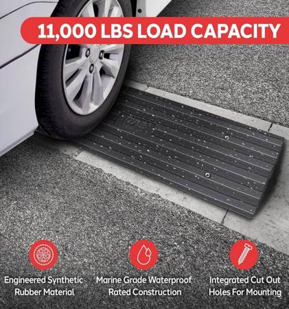 STURDY HARDWARE: This mobility street curb ramp is constructed from durable & high-quality materials. Made of industrial grade rubber material which protects your car from vibration & reduces the noise when you drive in or out through the curb