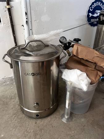 Looking to get into home brewing? This is a great all-in-one kit to get started or upgrade your current setup. I only used it twice – everything is clean, in excellent condition, and ready to go!