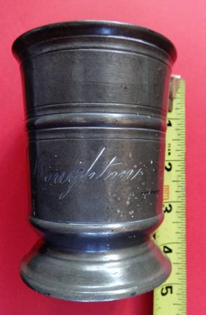 Antique pewter cup from an estate. Hallmarked. Inscription on side and bottom. $40.00 Please view pictures for details and description. See my other items and collectible pewter.