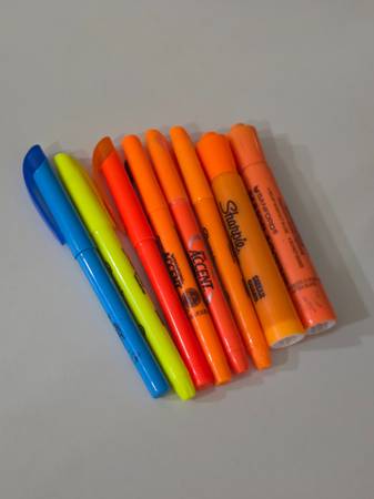 All permanent markers - Sharpie with a few fine points - $10 Four Pentel mechanical pencils 0.5 and 0.9 - $10 Highlighters - $5 X-ACTO knives - $5