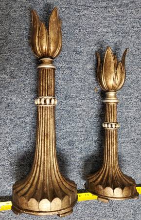 2 Nice Tabletop Pillar Candleholders Distressed bronze finish. Nice decorators. See my other great items!