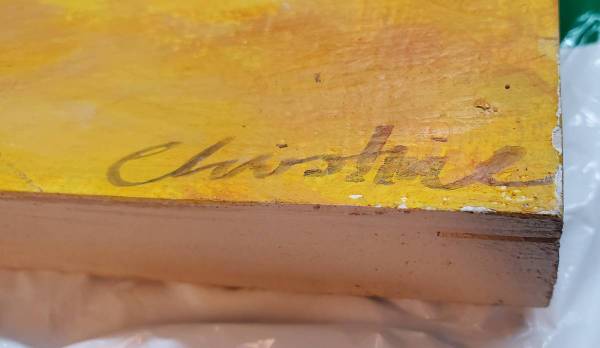 I believe this is an original and one of her early works based on the low original selling price, but I am unsure and viewers will need to determine. This could be by another artist named Christine, but the palm trees and painting technique are identical to others she has painted and the label appears to be original.