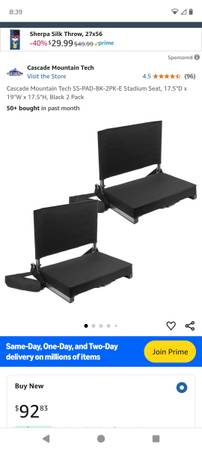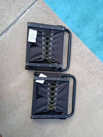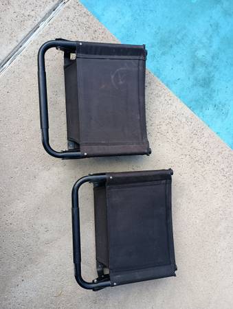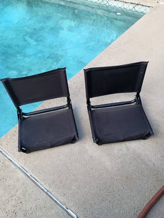 Set of two Cascade mountain stadium chairs very good condition super rugged easy to carry very comfortable great for indoor outdoor heavy duty these aren't lightweight Walmart ones very sturdy heavy...