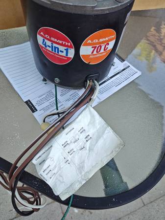 Open box new A O Smith HVAC motor. reversible. 460v 850 rpm. 1/2" stem is 6" long. Require a capacitor to run.Please view pictures.