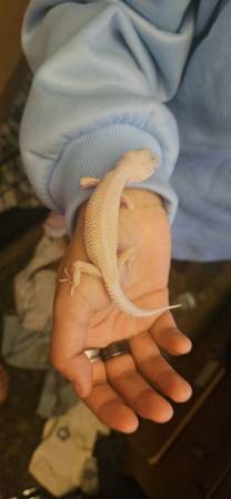 Gender unknown the stripe one fully tamed the all white one untamed both very young eats mealworms and crickets there $150 each and $250 for both
