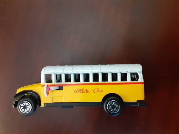 MODEL MALTA BUS FOR SALE GREAT GIFT FOR THE HOLIDAYS MODEL COLLECTABLE MALTA MODEL BUSES Malta Bus and Pencil Sharpener. Old-style Bus in Yellow and white with a moving STOP sign on the side of the...