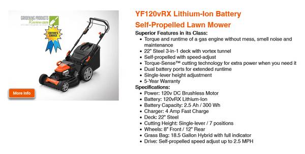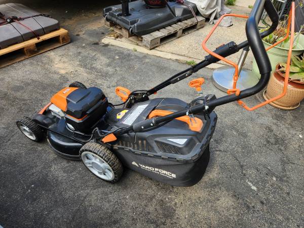 $899 Retail originally. YARD FORCE YF120VRX 120V ELECTRIC LAWN MOWER. DUAL BATTERIES. $899 PLUS TAX NEW PURCHASED AT COSTCO ABOUT 6 MONTHS AGO. SOMETHING IS WRONG WITH IT AND IT WON'T START. COULD BE A BAD POWER SWITCH BUT I DO NOT HAVE THE ORIGINAL RECEIPT. I USED TO BUY TRUCKLOADS OF COSTCO OVERSTOCK, DISCONTINUED AND RETURNED ITEMS AND AM NOW CLEARING OUT WAREHOUSE.