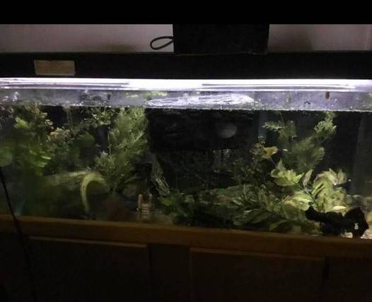 Beautiful 60-70 gallon acrylic tank, maybe one or two live plants for sale or Best Offer. No shipping. Pickup only. Includes tank, beautild sturdy wooden stand, all filters and parts, heaters, tank top and light, decor and other accessories. No live fish or snails. See pictures.