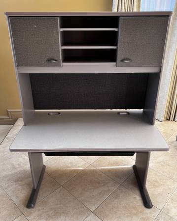 A beautiful, functional, and feature-rich Bush Business Series A computer desk with a hutch is up for sale. It originally cost over $750. The first person to pay cash for it wins.