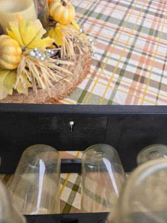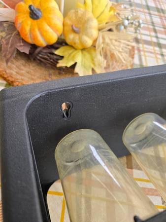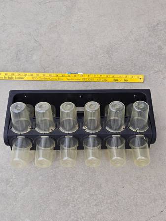 This rotating parts, nuts and bolts, or crafts storage container is 20 1/2" long, and the 24 containers have 3/4 cup capacity each. It rotates and locks into four different positions. It could be on a work or shelf, or it could be mounted on a wall with three fasteners or on the back of a door etc.