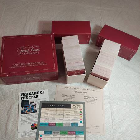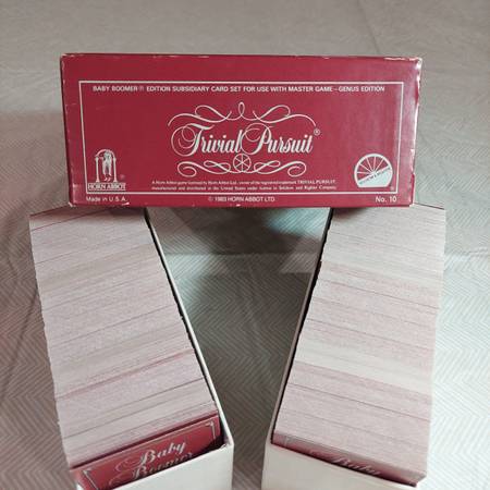 Trivial Pursuit 1981 Mastergame - Genus Edition & Trivial Pursuit 1983 - Baby Boomer Edition substitute cards.