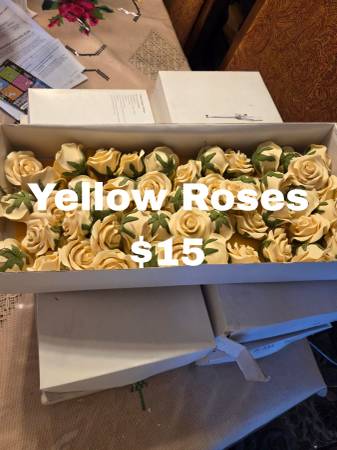 Flores de azucar a la venta para decorar pasteles etc. Tengo una mesa en mi porche para que vean las flores con mas tranquilidad en lugar de entrar a mi casa.