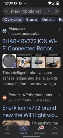 Heavy duty shark ion Wi-Fi . Brand new. Only used it three times. It has no dents or scratches. It records your whole house after the first round. Remembering every crevices of your home