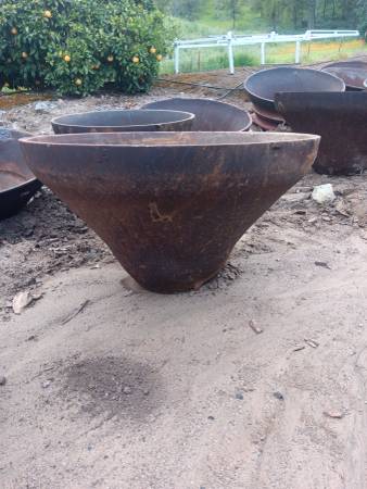 Heavy duty fire pits Different styles and sizes available Made of heavy steel Weigh 1,000 plus pounds Call or text for more info