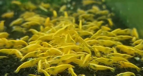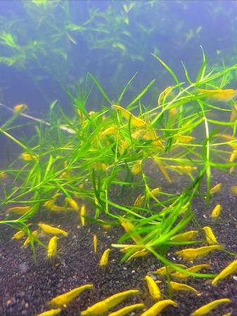 Super hardy and beautiful Yellow Goldenback Neocaridina Cherry Shrimp. All home bred using our local Orange County tap water.