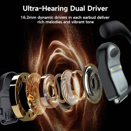 Ear Buds Open Ear Earbuds Bluetooth 5.3 Wireless, 80Hrs Playtime Over-Ear Headphone with Earhook Wireless Headphone Stereo Sound with Zipper Lanyard Case, 16.2mm Drivers for Running Workout, Black