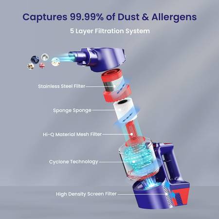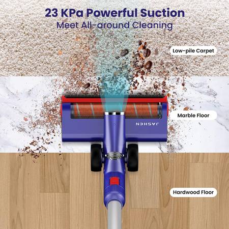 【 HIGH-EFFICIENCY FILTRATION】JASHEN lightweight vacuum cleaner is equipped with a 5-stage sealed cyclone filtration system that collects fine dust with a HEPA filter and locks dirt debris in a dust cup. Regularly cleaning the filters and sponges will prevent weak suction and blockages.