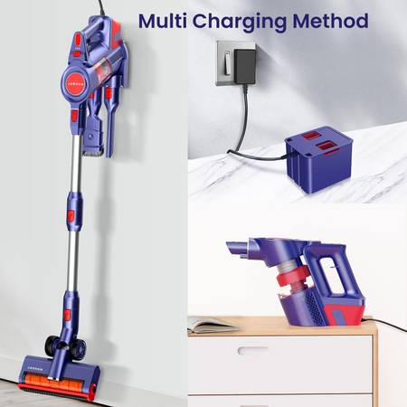 【2000MAH LITHIUM BATTERY】6-cell top 2000mAh lithium-ion battery pack provides a loss-free cleaning performance for up to 40 mins runtime. The pet cordless vacuum's battery is detachable and can be charged separately on the charging bracket.
