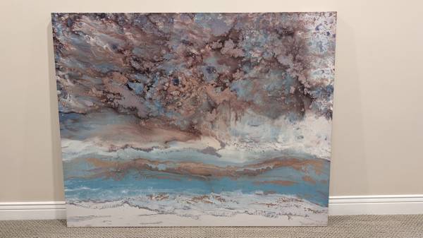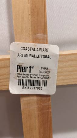 Beautiful artwork and aqua colors and neutrals. From Pier One. Measures 40 in x 50 in. Please email if interested