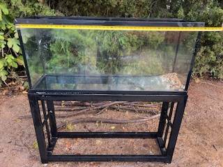 Aquarium formerly housed a turtle and some fish. Only tank and stand are included. No lights or filters or fish/turtles etc. Tank is 47.5" X 12.75 X 21 Stand is about 1/2" longer and 29.75" high and...