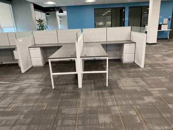 We have 40+ nice Allsteel 6'x6' & 6'x8 cubicles available. All in good-excellent condition. Light tone fabric with glass top dividers. Includes one file.
