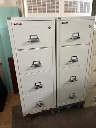 We have (3) nice putty color Fireking 4 drawer vertical file cabinets available. Legal size. Retails $3k+ (new)...Save Big! Dimensions: 21"W x 53H" x 31"D Price: $795ea Delivery available in...