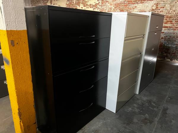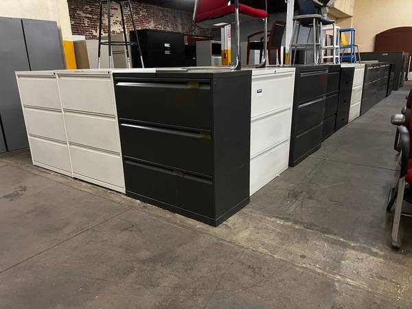 We have lots of metal filing cabinets in great condition starting from $60 and ALL PRICED AGGRESSIVELY. These are all commercial grade. We have a large variety of files like Verticals, Laterals, pedestals, combo cabinets and much more. Every file cabinet we have has been cleaned, inspected and is ready for duty. Also, these cabinets are lightly used and presentable for any business office, home office, church, school etc. Message me for inventories or to visit our massive warehouse full of sharp and sturdy office furniture.
