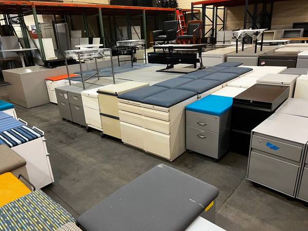 desks lockers , file cabinets , filing cabinets glass boards flat files supply cabinets training tables storage shelves used office desks used office chairs client chairs lobby chairs meeting tables flammable cabinets fire proof cabinets carts lunch room tables lunch room chairs herman miller hon steelcase knoll haworth book cases work stations L-shape desks book shelves glass tanker desks glass boards height adjustable desks electric desks desk conveters conference tables reception desks sofas couches club chairs index cabinets metal bins lateral files vertical files pedestal file cabinets coffee tables side tables rolling stair case work benches credenzas vintage tables