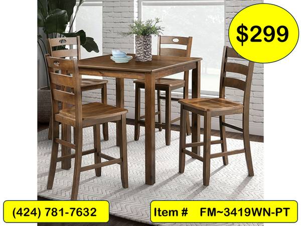 FM~3419WN-PT: 5 Pcs. Walnut Counter Height Dining Set ~ $299