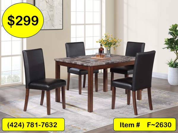 F~2630: 5 Pcs. Wood Dining Set w/ Faux Marble Table Top ~ $299